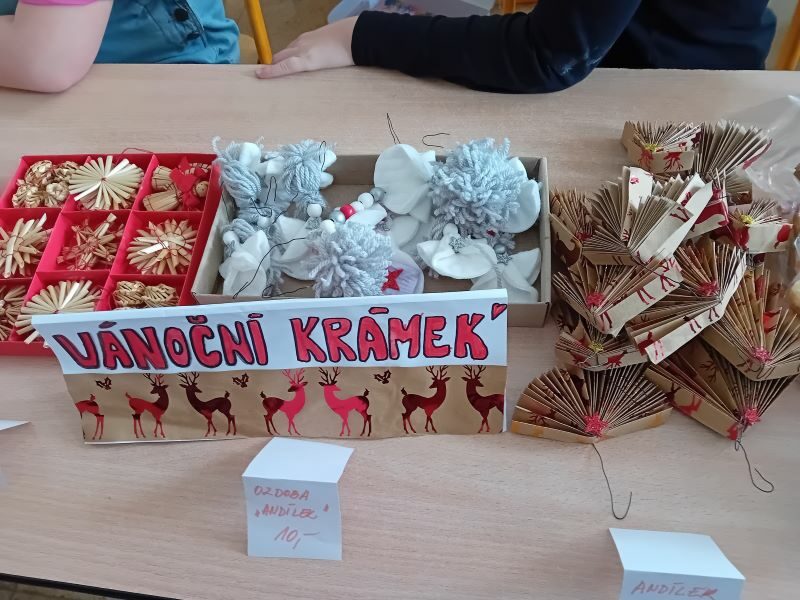 Ve středu po obědě se třídy v 1. patře školy proměnily v tržiště. Zde si děti připravily svoje „krámky“ se zbožím všeho druhu. Byly to perníčky, vánoční andílci a suché vazby či ozdoby, svíčky, mejdlíčka, náušnice, náramky, ale také drobnosti z papíru, figurky a plyšová zvířátka. Zkrátka věci, které chtěly předat dál. Nechybělo ani sladké občerstvení v podobě vánočky či dobrého moučníku. Prvňáčci „okoukli“, jak to na Bleším trhu chodí a těší se, až budou umět počítat, aby mohli také za rok prodávat. Velkou pochvalou této akce je, že se jí nezúčastňují jen děti, které chodí do ŠD, ale všichni, kteří mají zájem. Tak mezi prodávajícími najdete děti z 1. i 2. stupně ZŠ. Tradiční a oblíbenou akci navštívili všichni, kteří měli o něco zájem – žáci, pedagogové, vedoucí a provozní pracovníci naší školy. Přišli se podívat i rodiče a prarodiče…