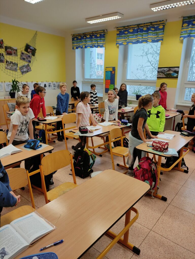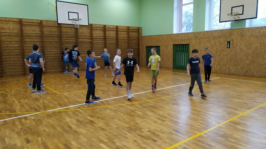 V tělocvičně si ještě zahrály „Čertí vybíjenou“ mezi třídami o adventní kalendář.