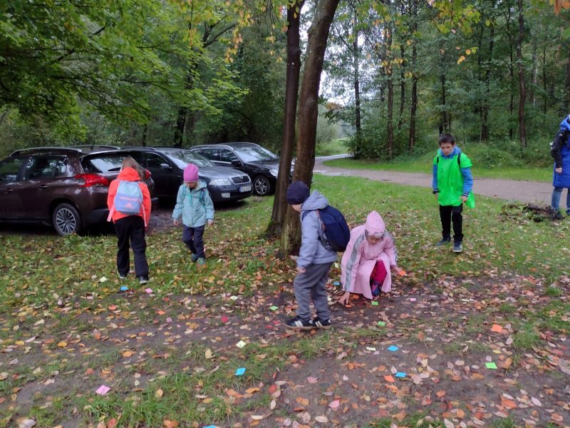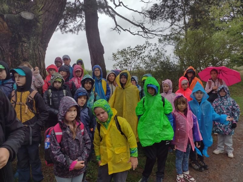 Tak letos to bylo opravdu dobrodružství! 1.celodružinová akce Co vypráví les, se odehrála v pátek 26. 9. od 13,00 do 17,00 hodin. Bohužel zcela jinak, než bylo v plánu a na co jsme se s dětmi těšili – les, zvířata v oboře, domečky pro lesní skřítky a hry v lese…Počasí si s námi hrálo jako kočka s myší a pláštěnky jsme využili na 100%. Obloha byla zamračená a často uplakaná, ale my jsme to nevzdali a maximálně si odpoledne užili. Pro procházku jsme zvolili méně bahnitý terén a to město Sezimovo Ústí, přesněji řečeno uličky na Nechybě, které nás dovedli až na Ovčín, do „Háječku“ a ke Kozskému potoku a Hilton. Kde to šlo a počasí trochu dovolilo, jsme si něco zahráli. Podařilo se nám zrealizovat štafetovou hru se sběrem barevných papírků, hru Na smysly, přírodní kvíz a lesní hádanky, bavili nás i přesmyčky či nápodoba lesních zvířátek. Svačina u Kozského potoka se piknikem nazvat nedala, do mokré trávy a do bláta by si nikdo nesedl, ale byla příjemnou vzpruhou před výstupem k Hiltonu. Zdolání místního kopce byla snad nejlepší aktivita naší výpravy. Díky správnému oblečení a obutí jsme se v pořádku a nepromočeni, vrátili do školy a zbyla nám i chvilka na podvečerní hraní ve družině. Dětem déšť nevadil, ba naopak a jejich velmi pozitivní závěrečné hodnocení akce, bylo jasným znamením toho, že se nám to povedlo a líbilo se nám… v přírodě… na cestě… spolu… za deště!