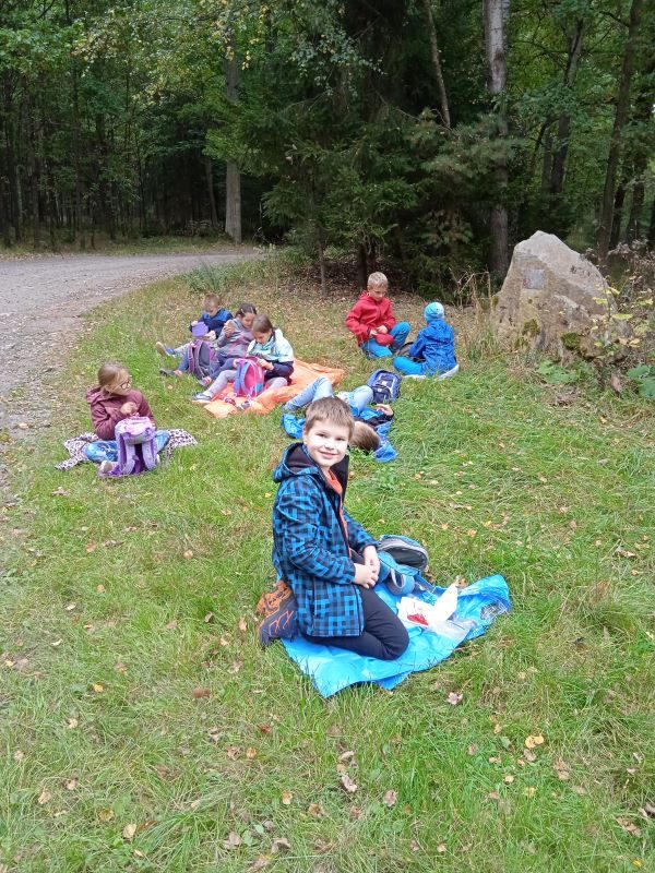V pátek 24. září jsme se sešli ve 13,00 hodin před školou, abychom vyrazili na 1. celodružinovou akci v tomto školním roce. Byla to procházka naučnou stezkou Nechyba a v jejím okolí – Co vypráví les.