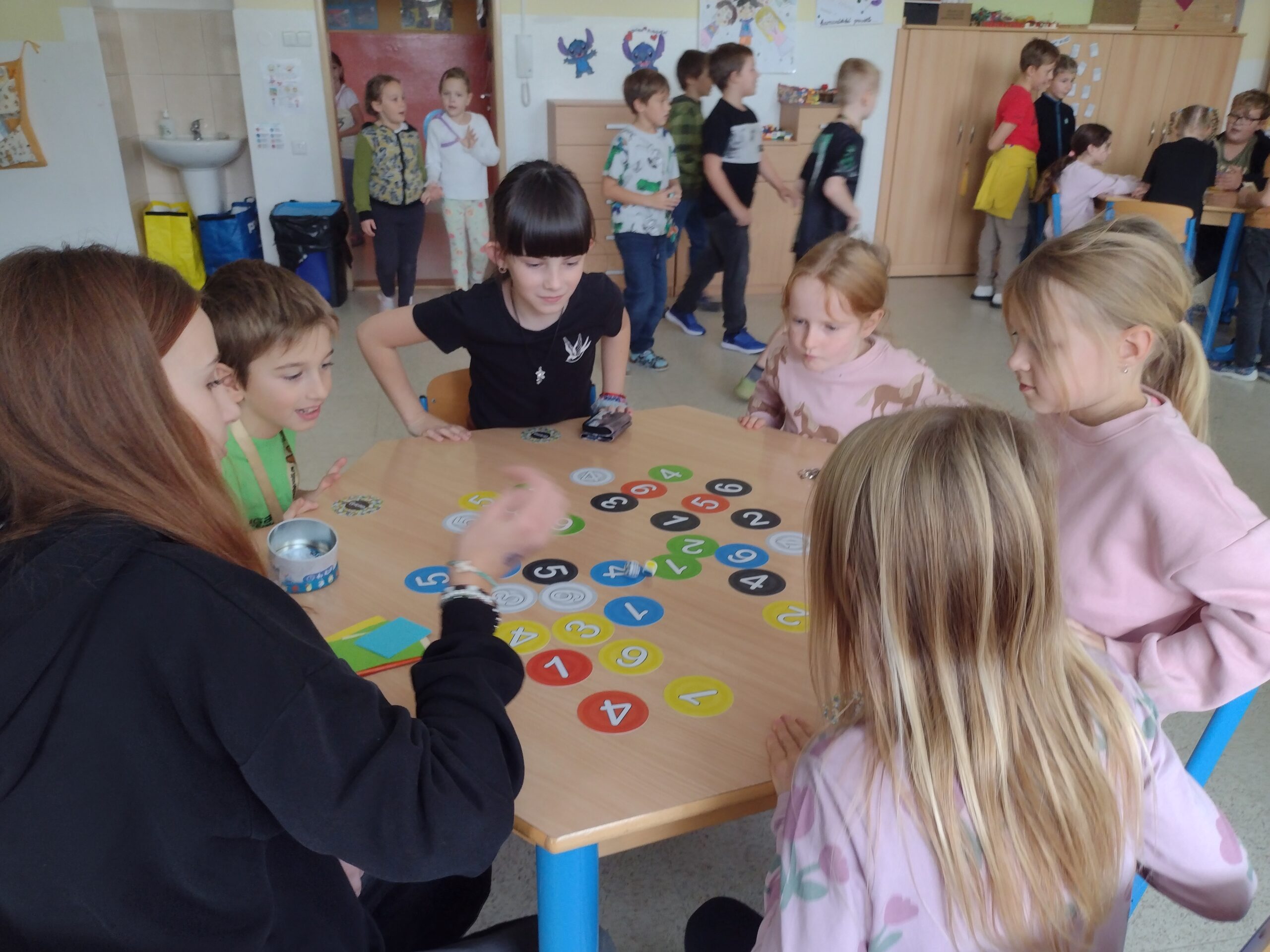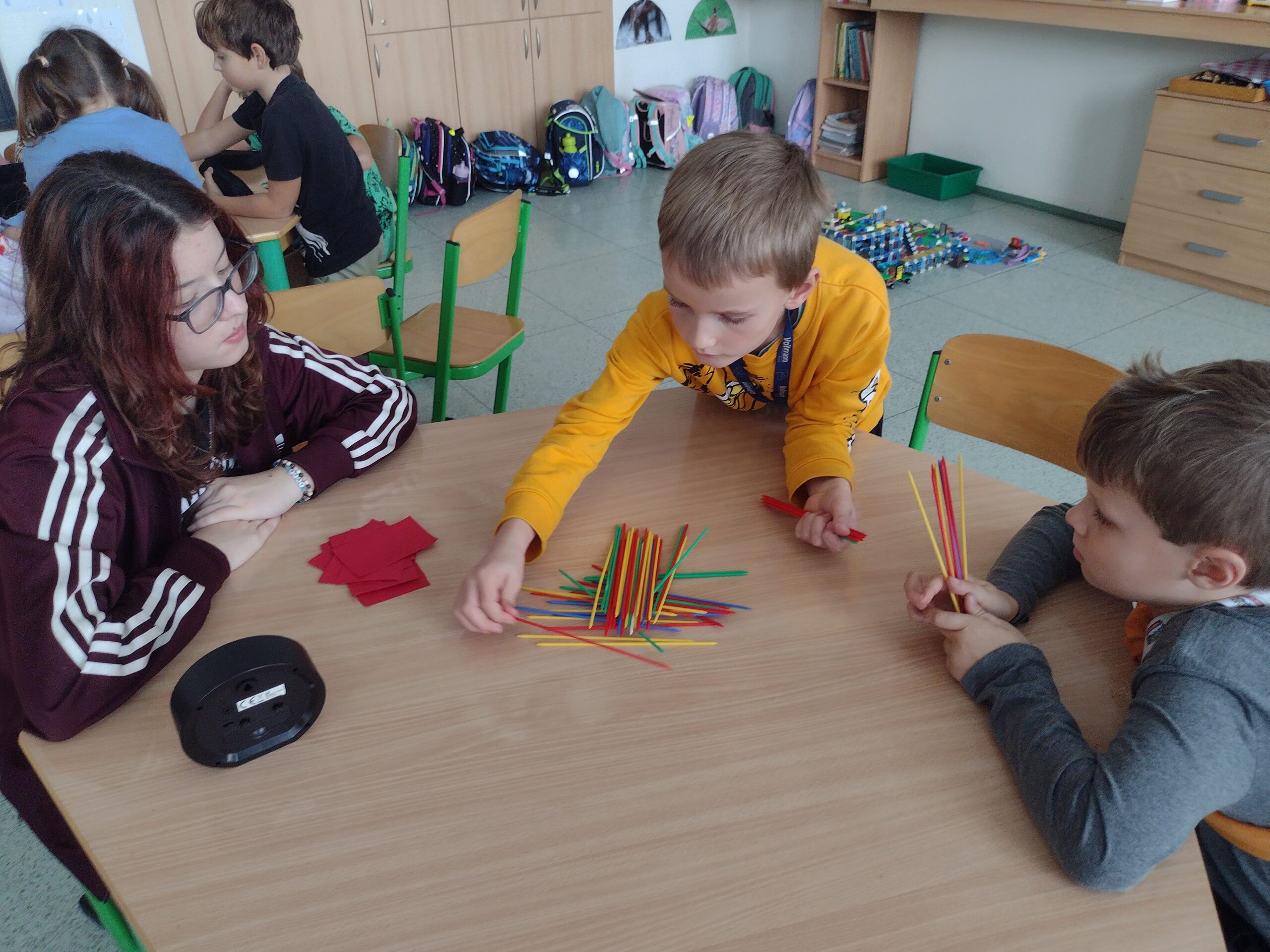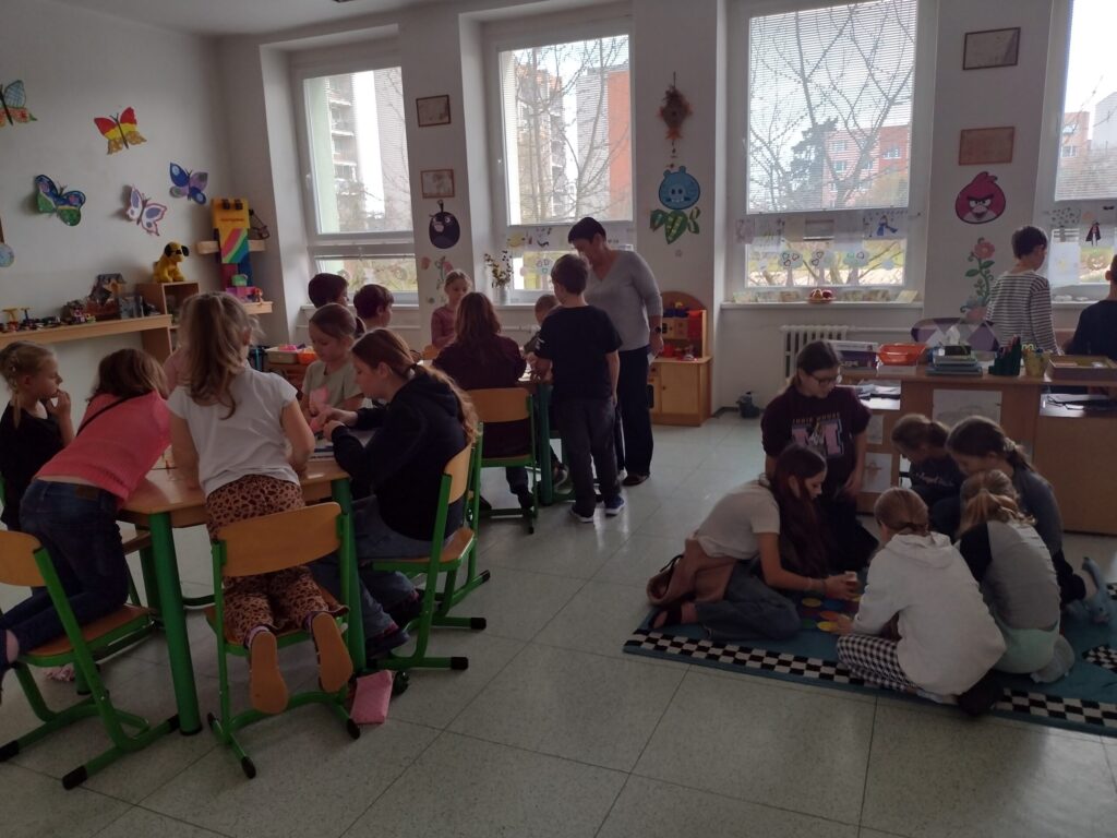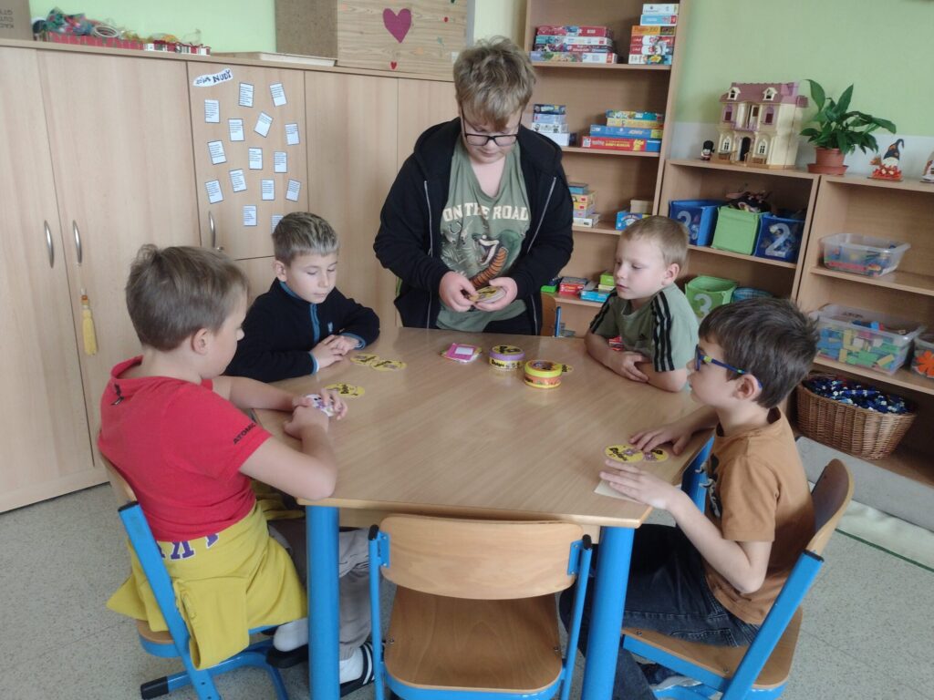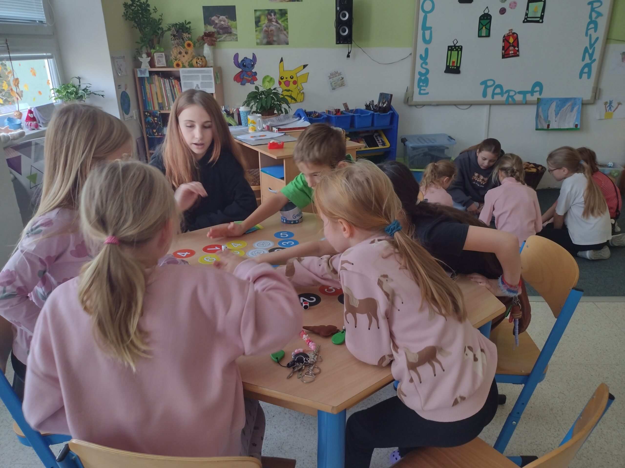 Na vše v duchu fair – play dohlíží vychovatelky a starší kamarádi ze školy, tentokrát to byli žáci z 7.A, 7.B a 7.C. „Rozhodčí“ pečlivě připravují stanoviště, motivují děti ke hře a pozorně sledují průběh či připomenou pravidla, když je třeba…