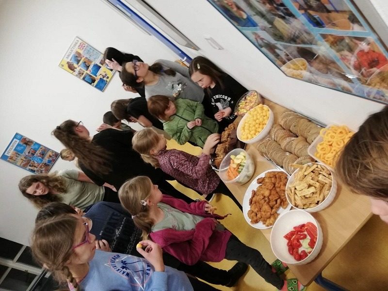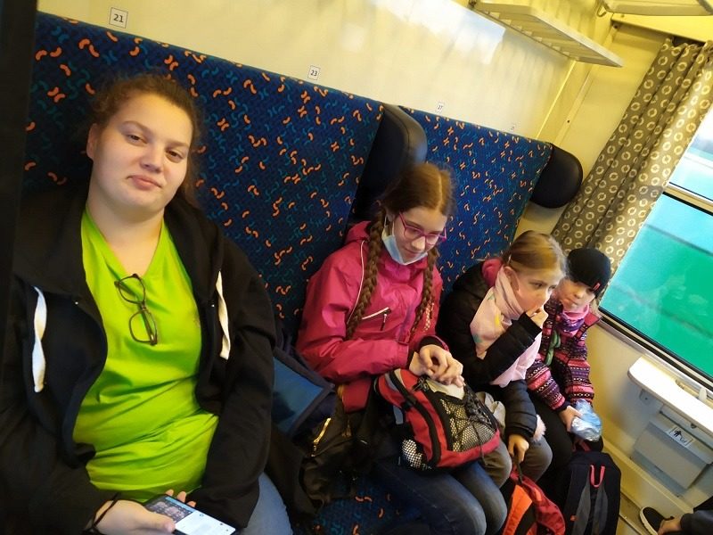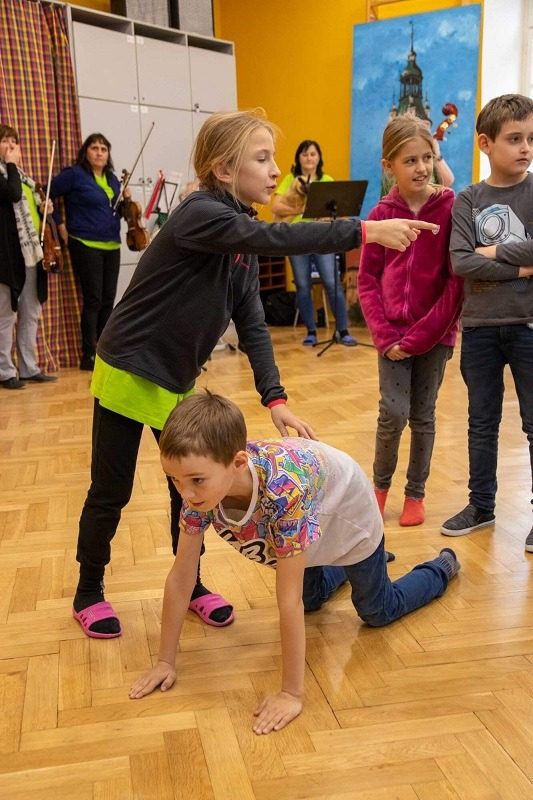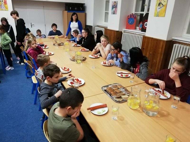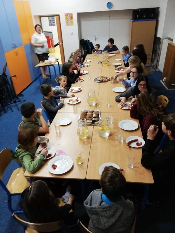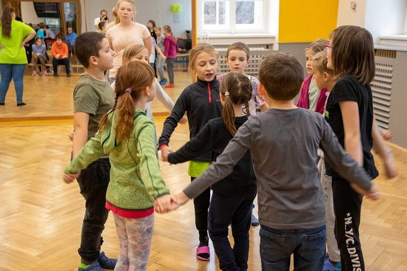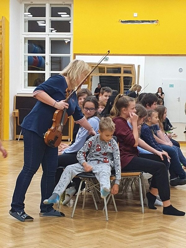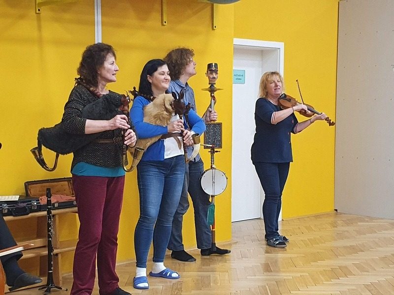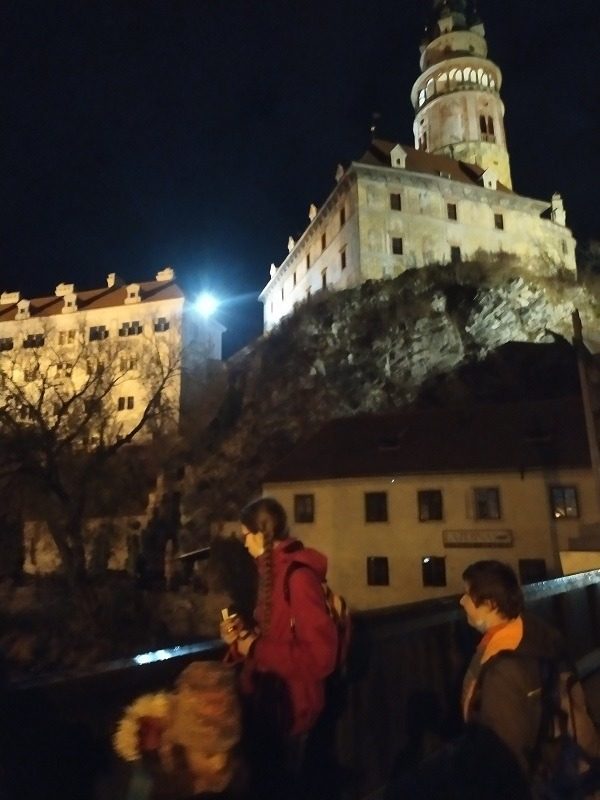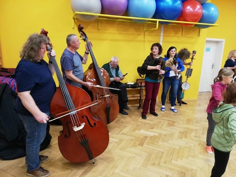 Mohli jsme se konečně za nimi rozjet. Cesta vlakem byla sice dlouhá, ale pro někoho to byl zážitek, neboť to bylo poprvé. Na nádraží na nás čekala dudačka krumlovského souboru Zlatka, která nás vedla večerním městem a temnými zákoutími Krumlova za doprovodu jejího příjemného vyprávění. Po příchodu do domu dětí a mládeže nás čekala doslova hostina a poté hudební hry s nácvikem našeho společného programu. Po nich byl čas uložit se ke spánku. Spát ve spacáku na karimatce vedle svého kamaráda bylo pro mnohé dalším jedinečným zážitkem. Ráno zabalit, nasnídat a vyrazit vstříc historickému městu, kde byla pro oba soubory i jejich muzikanty připravena pátrací hra. Užili jsme si to všichni a našli to, co jsme měli. Po vynikajícím obědě nás čekalo vystoupení pro veřejnost. Povedlo se a my odjížděli s dobrými pocity a dojmy.