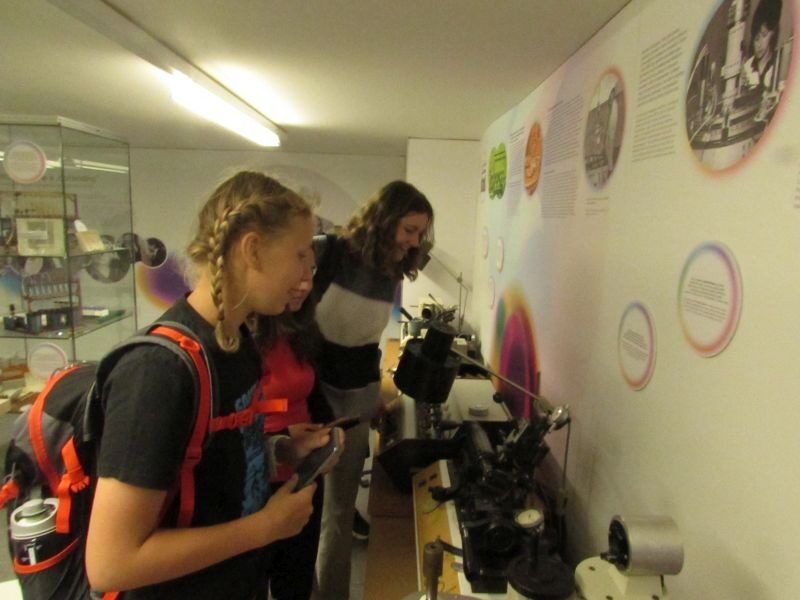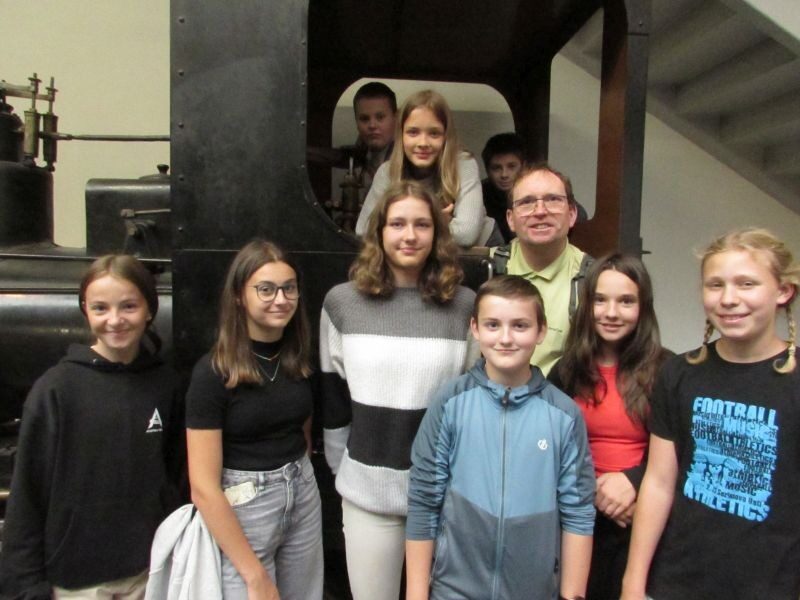 V muzeu se po hodinové cestě se skupina posilnila svými svačinami a pak se hned vrhla do expozic. Výstavy byli zajímavé, a dokonce tam měli i místnosti s krátkým filmem. Je tam i obrovský sál kde jsou vystaveny stará auta, motorky, letadla, lokomotivy ale i kola.