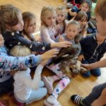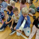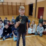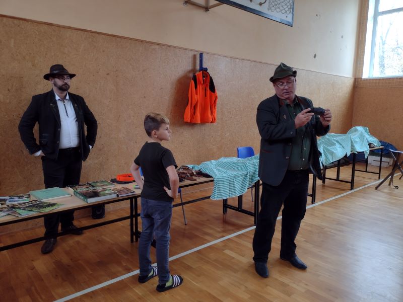 Děti si mohly zblízka prohlédnout paroží, vycpaná zvířata, lovecké nože, oblečení, vábničky a další nástroje a pomůcky, které myslivec používá. Některé z nich si dokonce vyzkoušely v rámci praktické ukázky – například jak se používají vábničky, pohladily zvířata… Pan Vincenc přivezl také učebnice a knížky o myslivosti, takže si děti mohly udělat představu, jak náročné a zodpovědné toto povolání a poslání je.