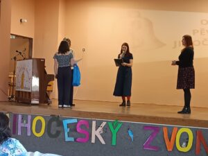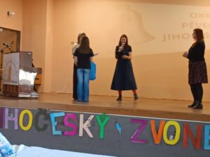 Ve čtvrtek 23.dubna se zúčastnily Amálka Dohnalová ze 7.A a Anička Rýdlová ze 6.B pěvecké soutěže Jihočeský zvonek v DDM Soběslav. tato soutěž byla obnovena po šesti letech. Do této tradiční soutěže pořádané spoustu let zasáhl nejen covid, ale také skutečnost, kdo bude soutěž pořádat dál, zda Město Tábor, nebo DDM Tábor. Nakonec se této dlouholeté soutěže výborně zhostil DDM Soběslav, a my jsme s děvčaty opatrně vyrazily na průzkum. O soutěž byl nebývalý zájem, soutěže se zúčastnilo 53 dětí v pěti kategoriích, z nichž čtyři jsou postupové do krajského kola.