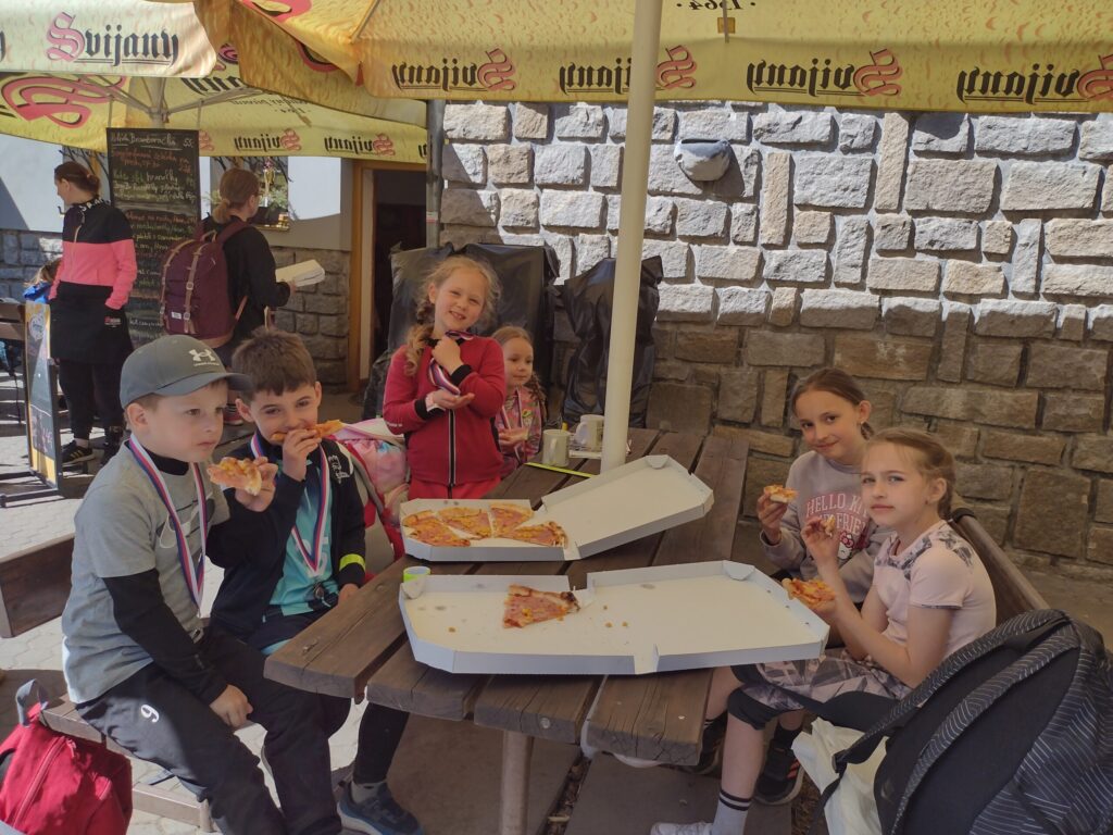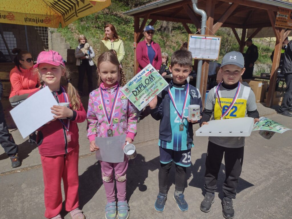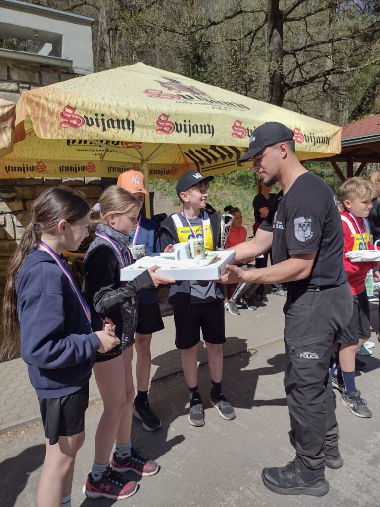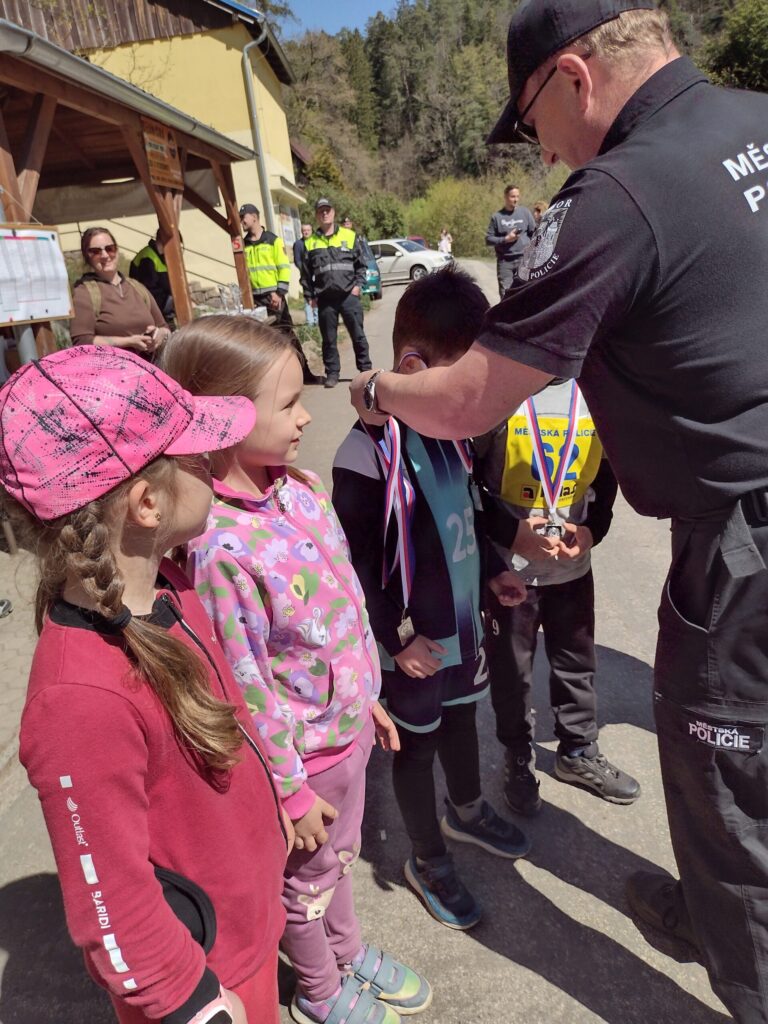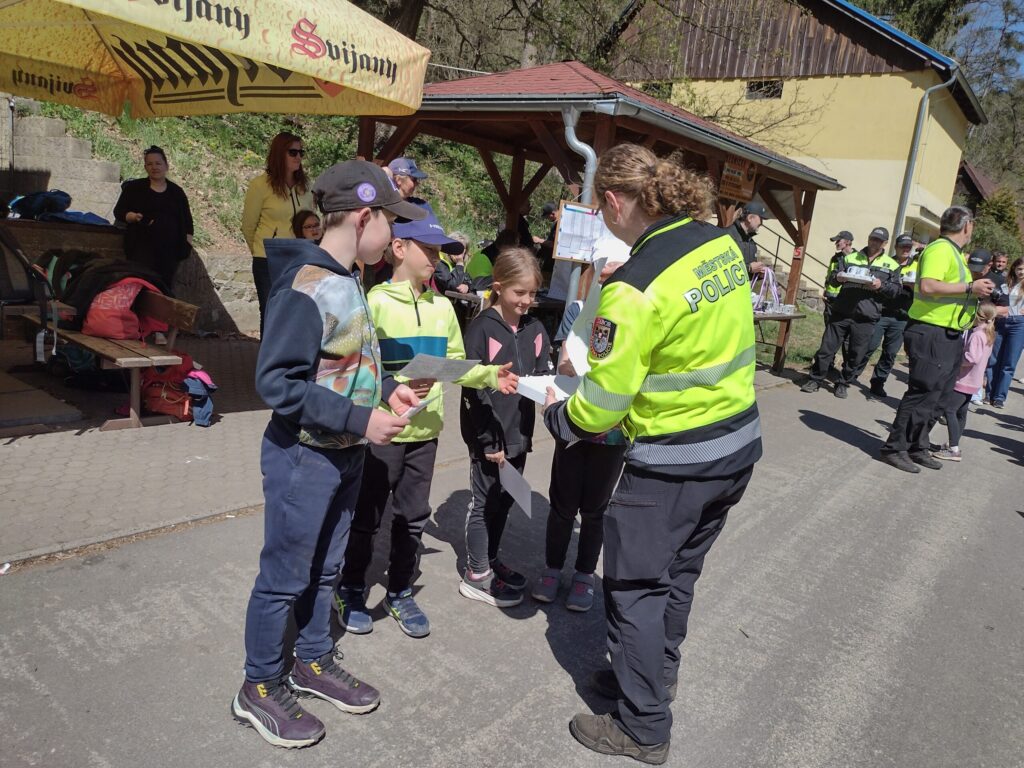 Ve středu 29. 4. se děti z naší školy zúčastnily branného závodu pořádaného Policií ČR Mladý strážník. Závod se konal na Harachovce a v jejím okolí. Na děti čekala stanoviště, která prověřila jejich týmovou spolupráci, vědomosti, obratnost, rychlost, přesnost a postřeh, paměť a také orientaci v terénu. Celá trasa měřila 3km a všechna naše družstva ji zdolala s nadšením a jednotlivé úkoly splnili víc než dobře! Po náročném závodě, přišla i sladká odměna z místní restaurace…Počasí nám tentokrát přálo, den byl jako korálek…a dostavil se i tolik očekávaný úspěch…Cinklo to! A radost byla obrovská! 1. místo tedy zlato domů přivezly děti z 5. ročníku. Stříbro vybojovali prvňáčci. Velmi gratulujeme!!!