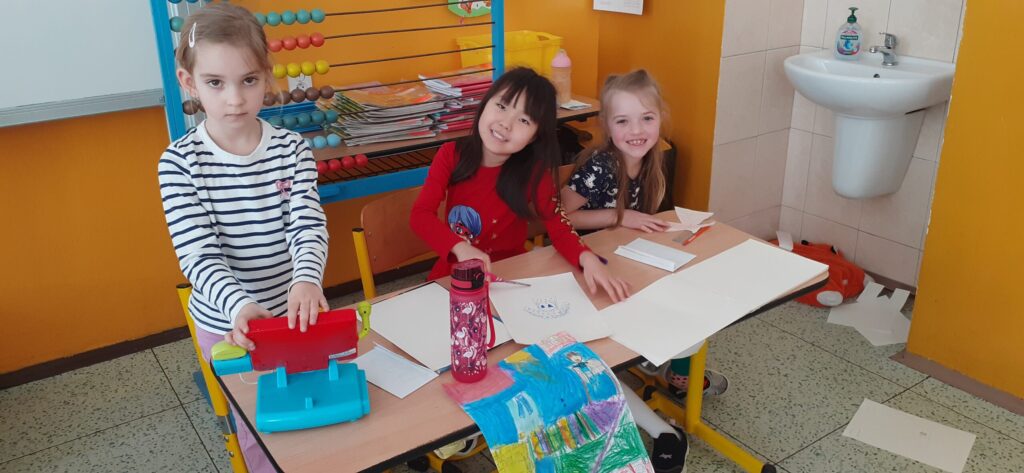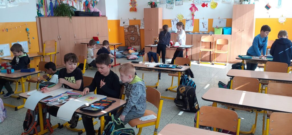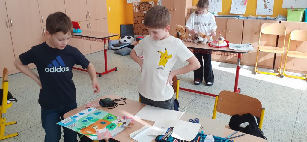 Při výtvarné výchově si děti namalovaly různé výlohy obchodů, oblečení, hračky, sportovní potřeby…