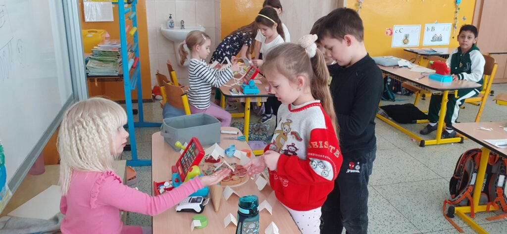 V rámci hodin matematiky jsme se s chutí pustili do prodávání a nakupování.