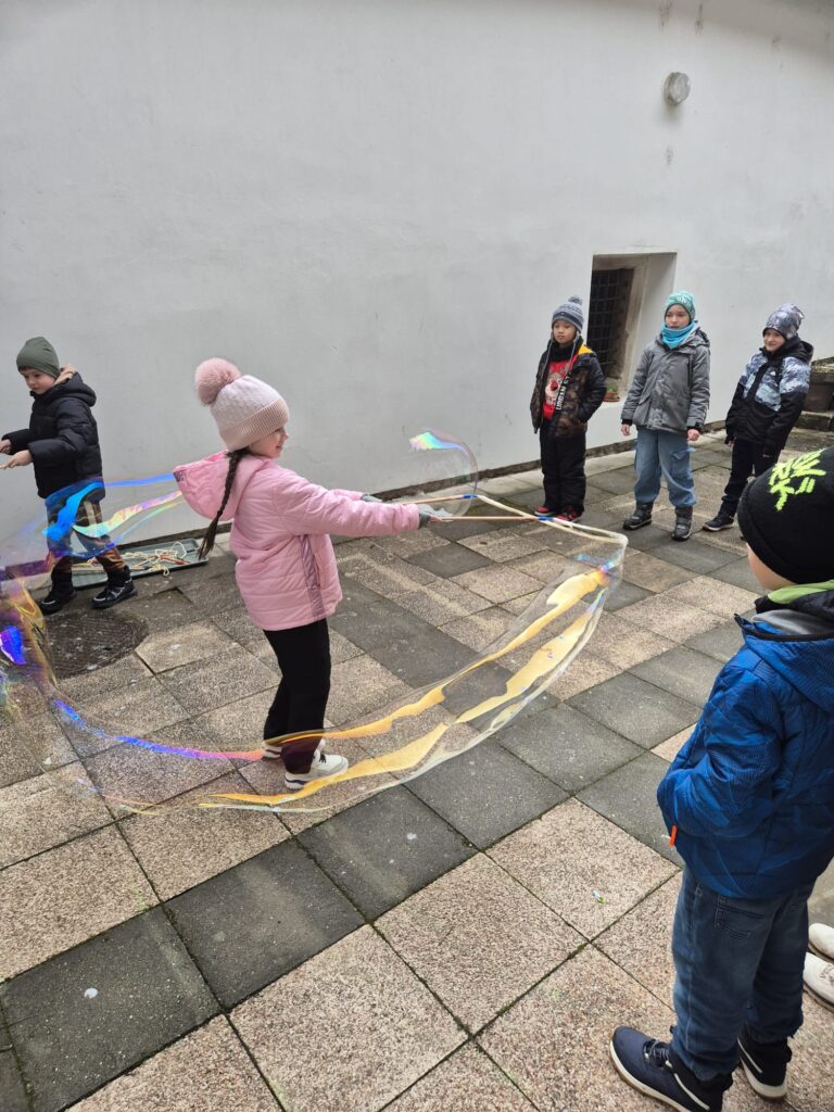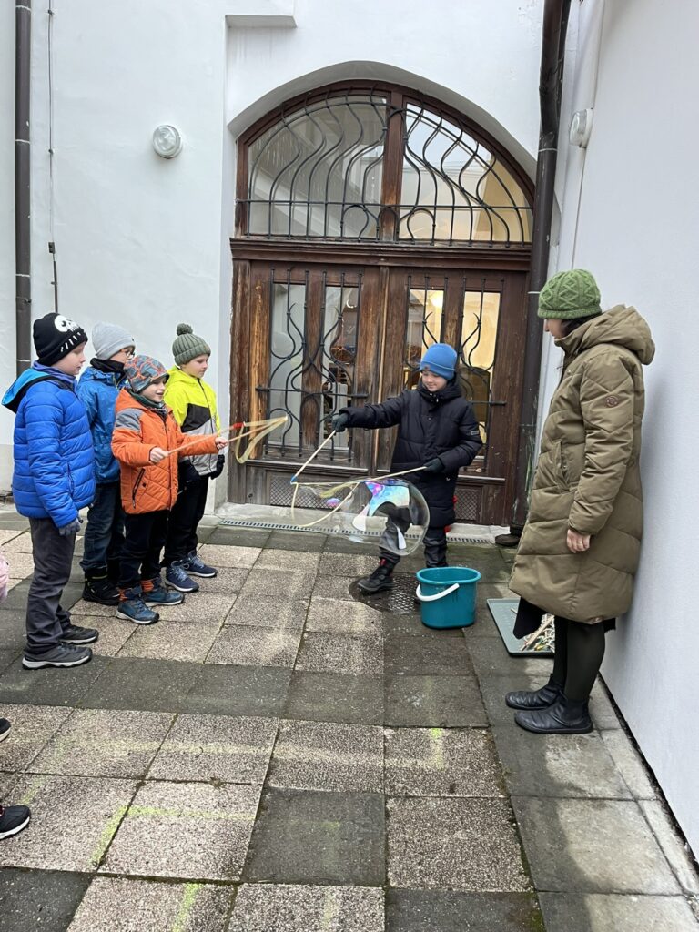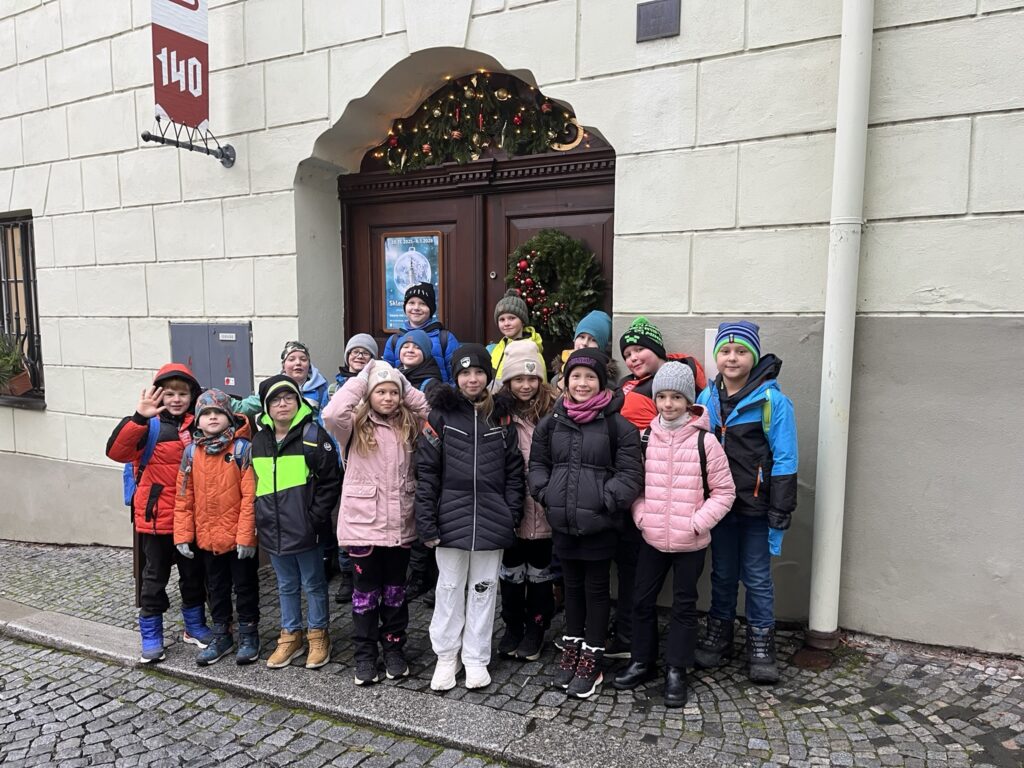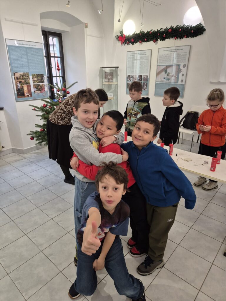První prosincový den jsme se společně se třídami 3.A a 3.B vydali do Tábora, kde jsme navštívili Galerii 140. Zde pro nás byl připraven edukační program s názvem O stromečku a křehkosti. Nejprve jsme si prohlédli výstavu Skleněné Vánoce, kde jsme obdivovali množství vzácných skleněných ozdob a dozvěděli se, jak se tyto ozdoby v dávných dobách vyráběly. Následně jsme se sami pustili do tvorby ozdob – tentokrát dřevěných, které jsme zdobili třpytkami a skleněnými detaily. Viděli jsme i poutavé video, ve kterém bylo formou příběhu ukázáno, jak se lidé v horách díky daru od Krakonoše naučili vyrábět sklo, aby se mohli uživit. Poté jsme si ve venkovních prostorách galerie vyzkoušeli tvoření bublin, což mělo mezi dětmi velký úspěch.