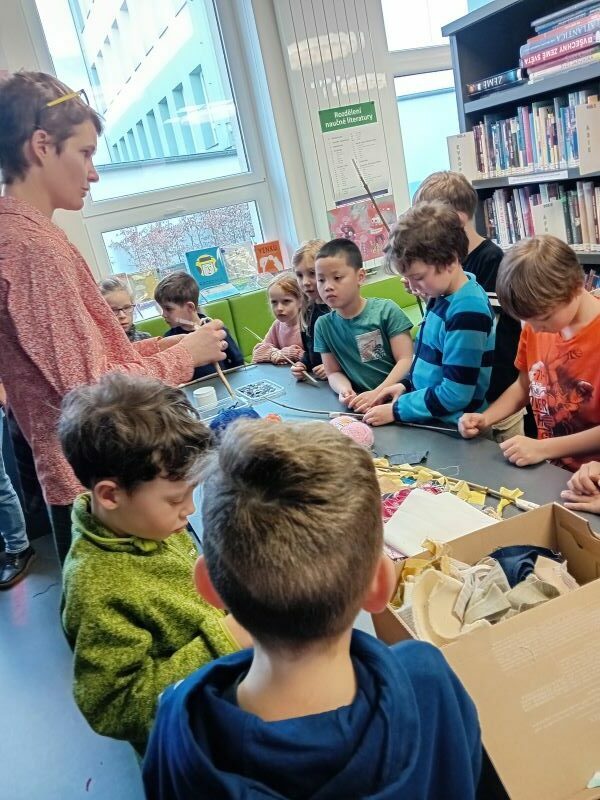 Ve středu 13.3 bylo pro naše prvňáčky v knihovně připraveno autorské čtení a workshop. Akci pro nás připravila Eva Volfová a Tereza Horváthová, autorka a ilustrátorka knihy Nitka a zatoulaný knoflíček. Děti z 1. C navštívily knihovnu Sezimova Ústí již dopoledne a stejný program byl nachystán i pro děti z 1. A a B a to na odpoledne, v rámci školní družiny. Autorka knihy Nitka a zatoulaný knoflíček paní Tereza Horváthová dětem celou knihu přečetla. A nebojte se, nudné to nebylo! Ilustrátorka paní Eva Volfová si připravila tvoření, které bylo inspirované knihou a hrdiny, se kterými se děti v rámci čtení seznámily. A tak oblékaly krokodýly, tvořily králíky a žížaly z látek, klacíků, vlny…čas strávený v knihovně byl velmi hezký, rychle nám utekl a trochu nás to mrzelo. Bylo to velmi pestré, inspirativní a bavilo to jak děti, tak i dospělé!