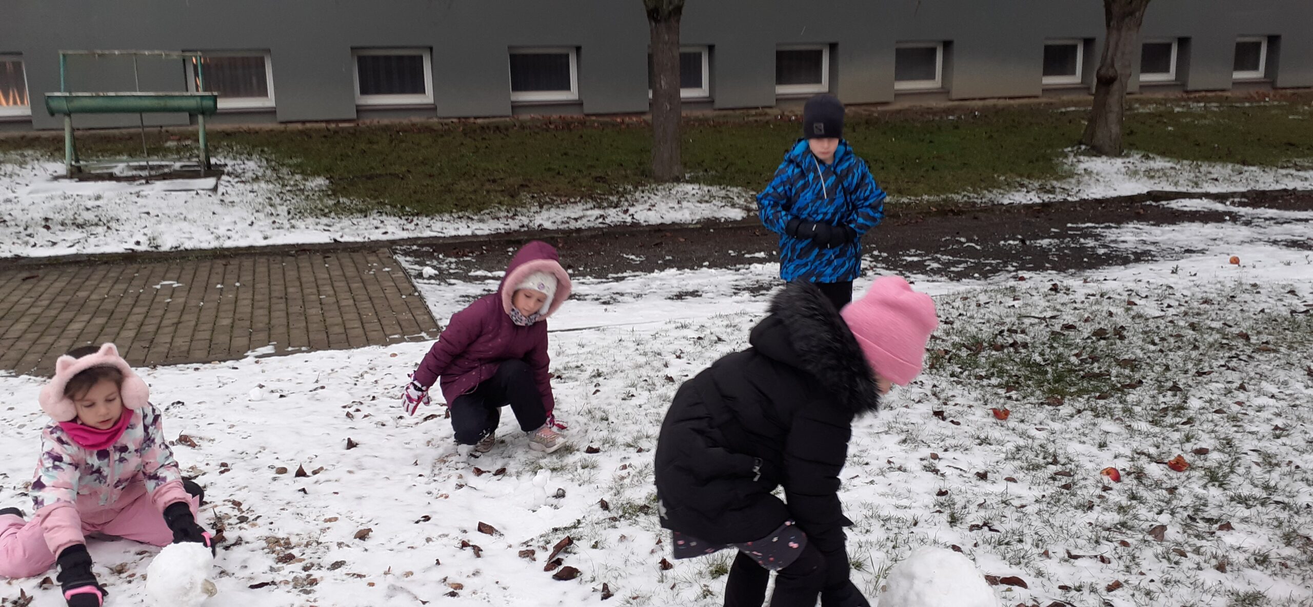Ve středu jsme si užili sněhové nadílky na zahradě školy.