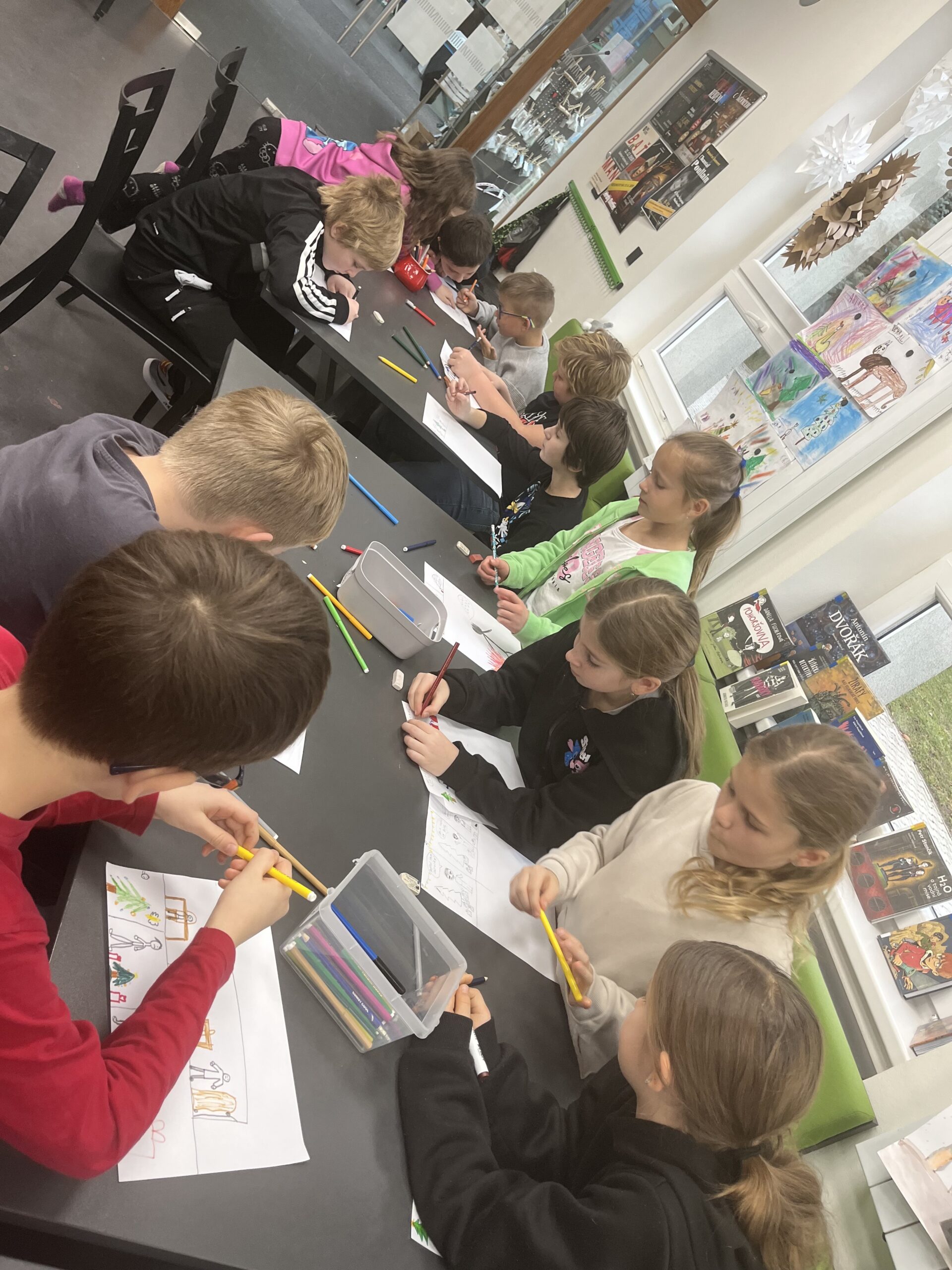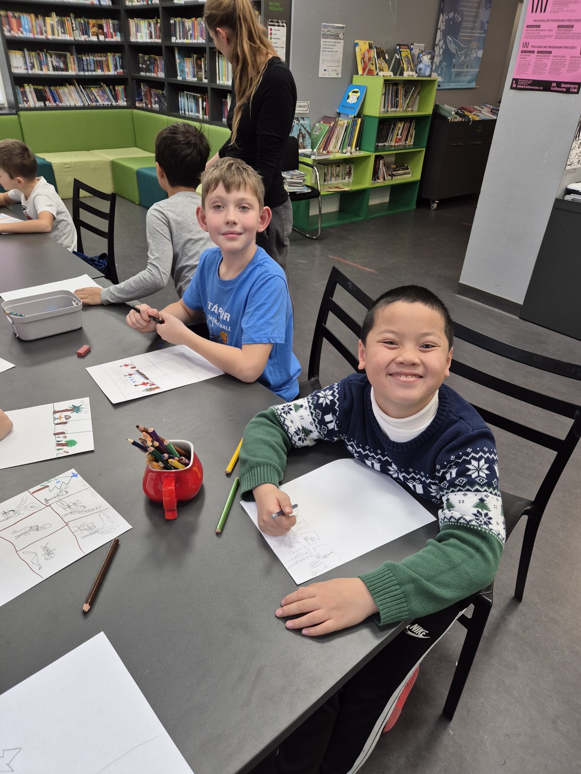 Druhý program – Komiks byl provázen různými aktivitami, které se zaměřovaly na spolupráci ve skupinách a nebylo to vždy jednoduché. Každé z dětí si také vyzkoušelo svůj komiks vymyslet.