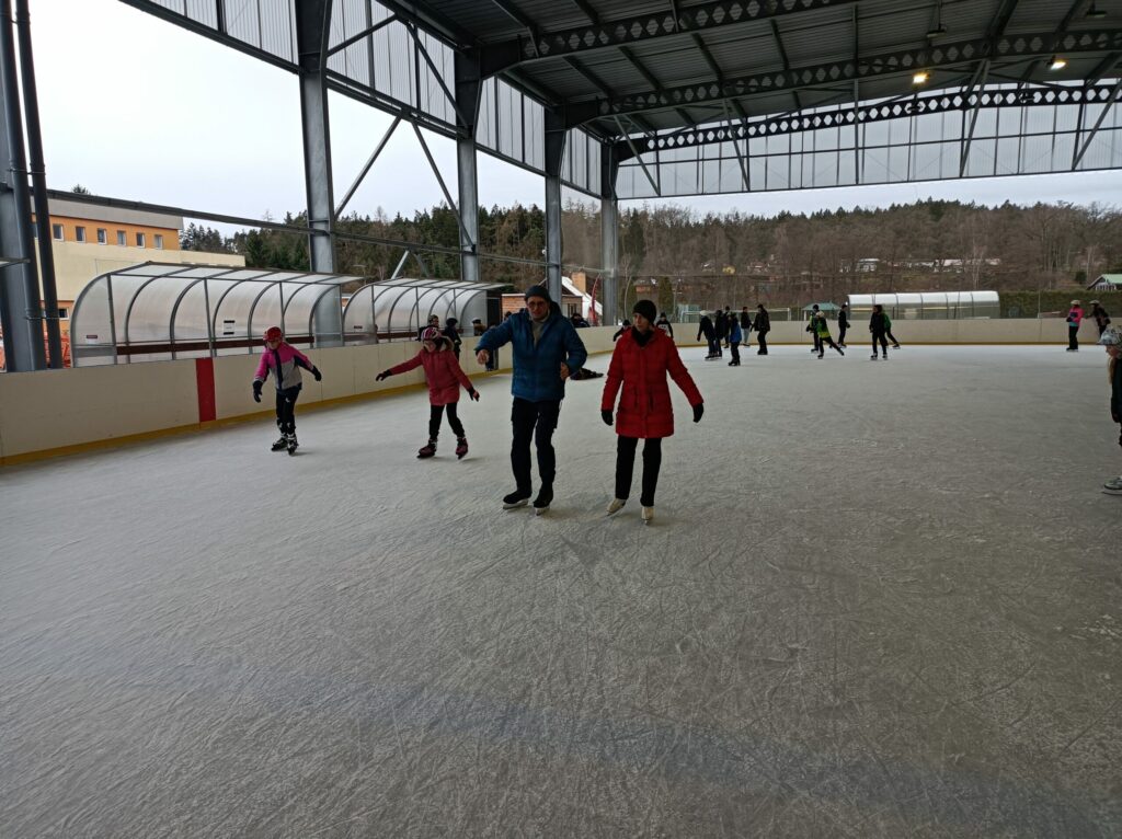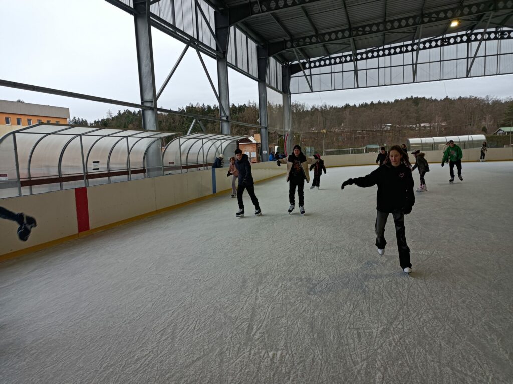 Skupina zájemců o bruslení byla rozdělena na dvě skupiny. První tvořící osmé a deváté ročníky vyrazila hned na devátou hodinu, o šedesát minut později vstupovali na kluziště mladší žáci. I když mnozí již nějaký ten pátek na bruslích nestáli a byla z nich cítit nervozita, po pár odrazech na ledovém zrcadlu se sebevědomí vrátilo a po polovině určeného času již nebylo poznat, kdo si zpočátku nevěřil.