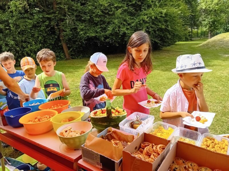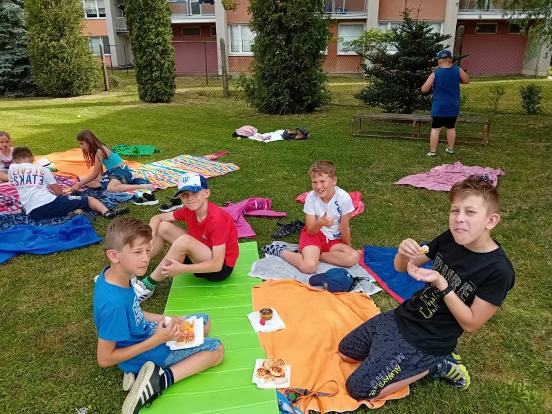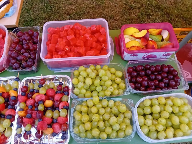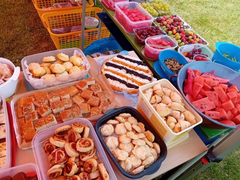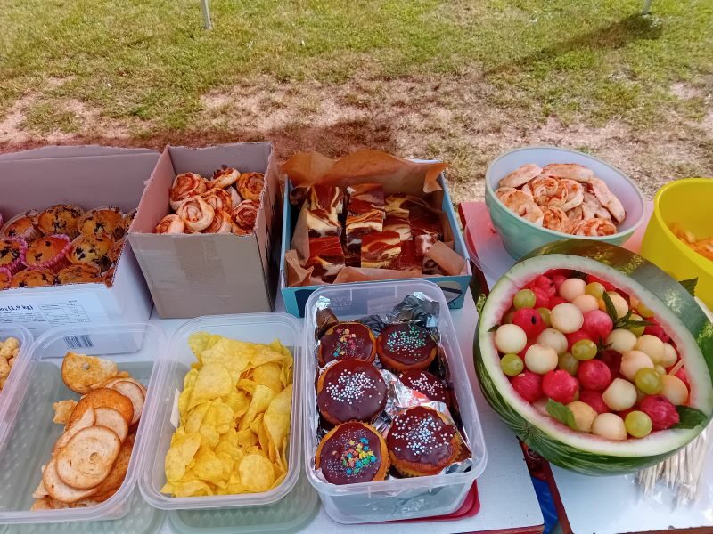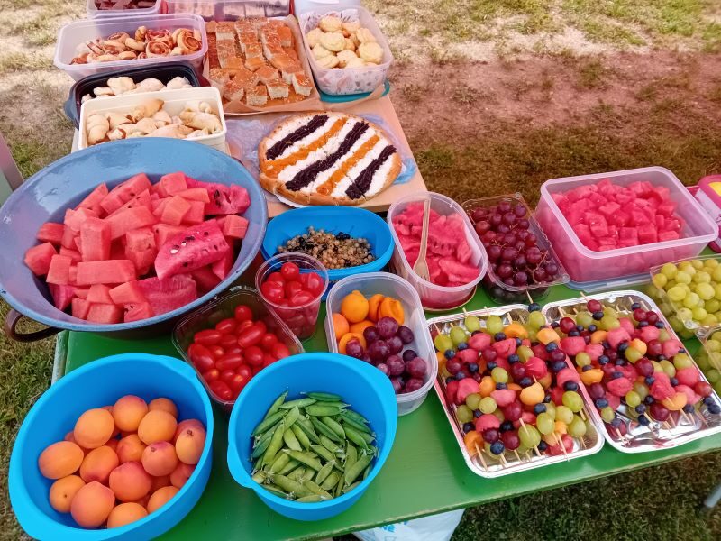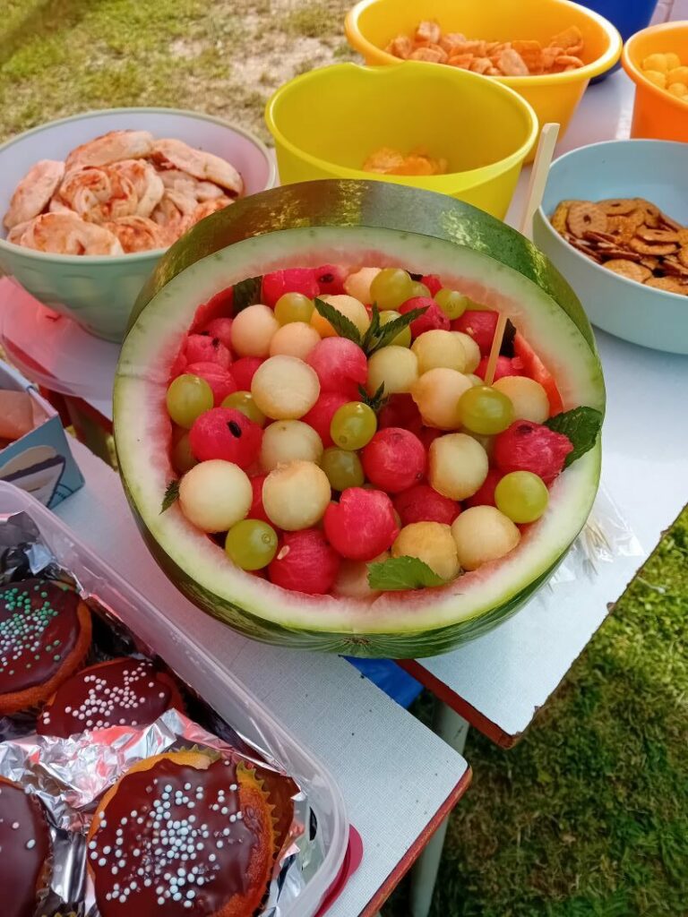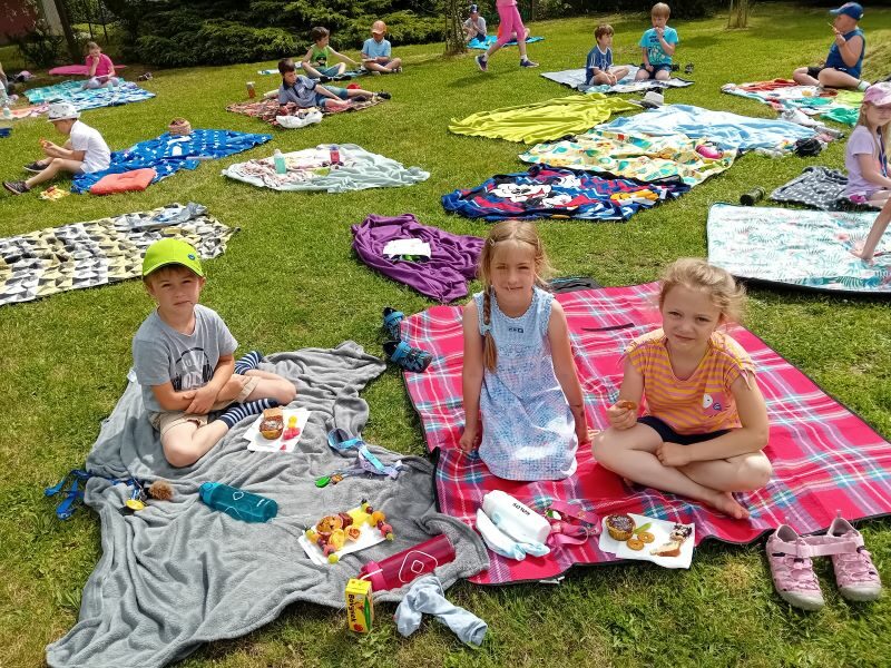 Ale hlavní a velký dík patří maminkám, babičkám, tetám a i tatínkům, kteří nám pomohli vytvořit opravdu obrovský piknik!!! K snědku bylo nachystáno vše, na co si děti vzpomněly…Muffiny a koláče, bonbóny, chipsy, ovoce, zelenina, tyčky, bábovky, slaní šneci a sladcí šneci, popcorn, křupky, ovocné špízy, bábovky…prostě sladkého a slaného, chutí na vybranou. Děkujeme za skvělý raut a krásné dopoledne.