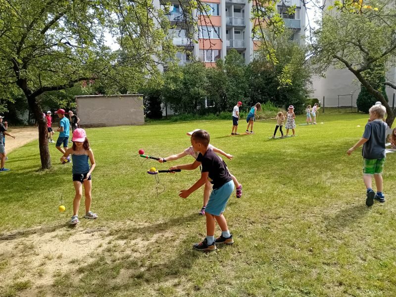 Dnes 21. 6. 2024 dopoledne jsme se na zahradě školy pomyslně rozloučili se školním rokem a přivítali léto!