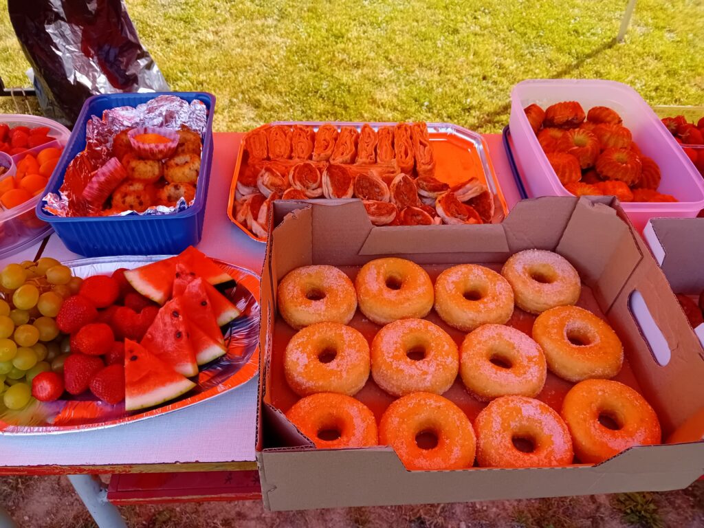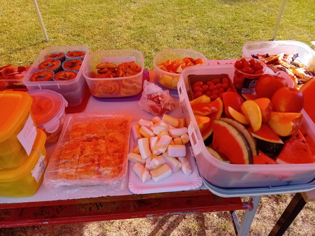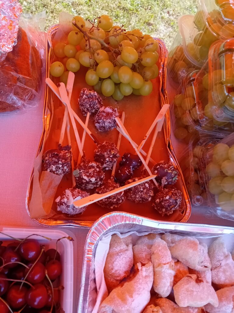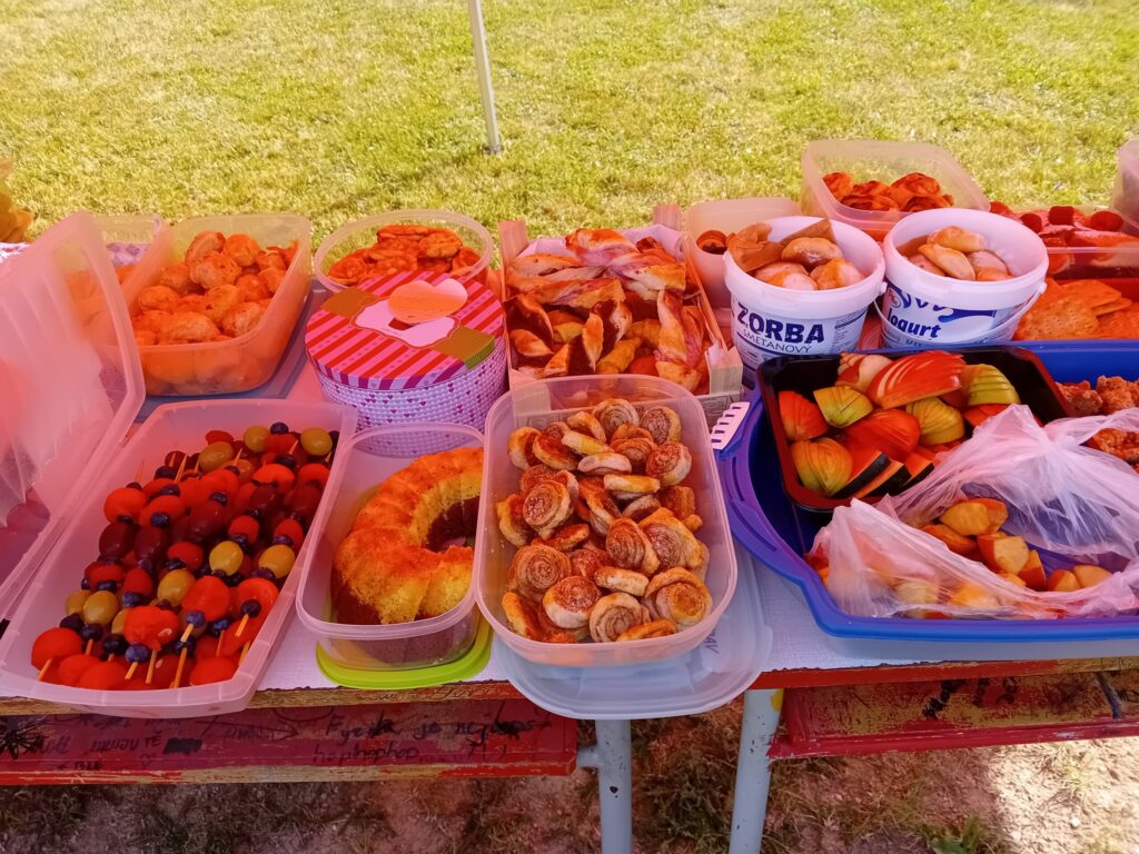 Ale hlavní a velký dík patří maminkám, babičkám, tetám a i tatínkům, kteří nám pomohli vytvořit opravdu obrovský piknik!!! K snědku bylo nachystáno vše, na co si děti vzpomněly…Muffiny a koláče, bonbóny, chipsy, ovoce, zelenina, tyčky, bábovky, slaní šneci a sladcí šneci, popcorn, křupky…prostě sladkého a slaného, chutí na vybranou. Děkujeme za skvělý raut a krásné dopoledne.