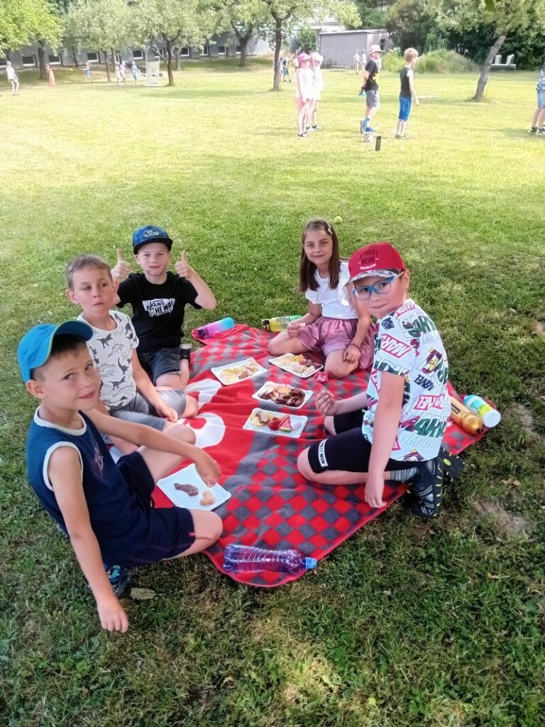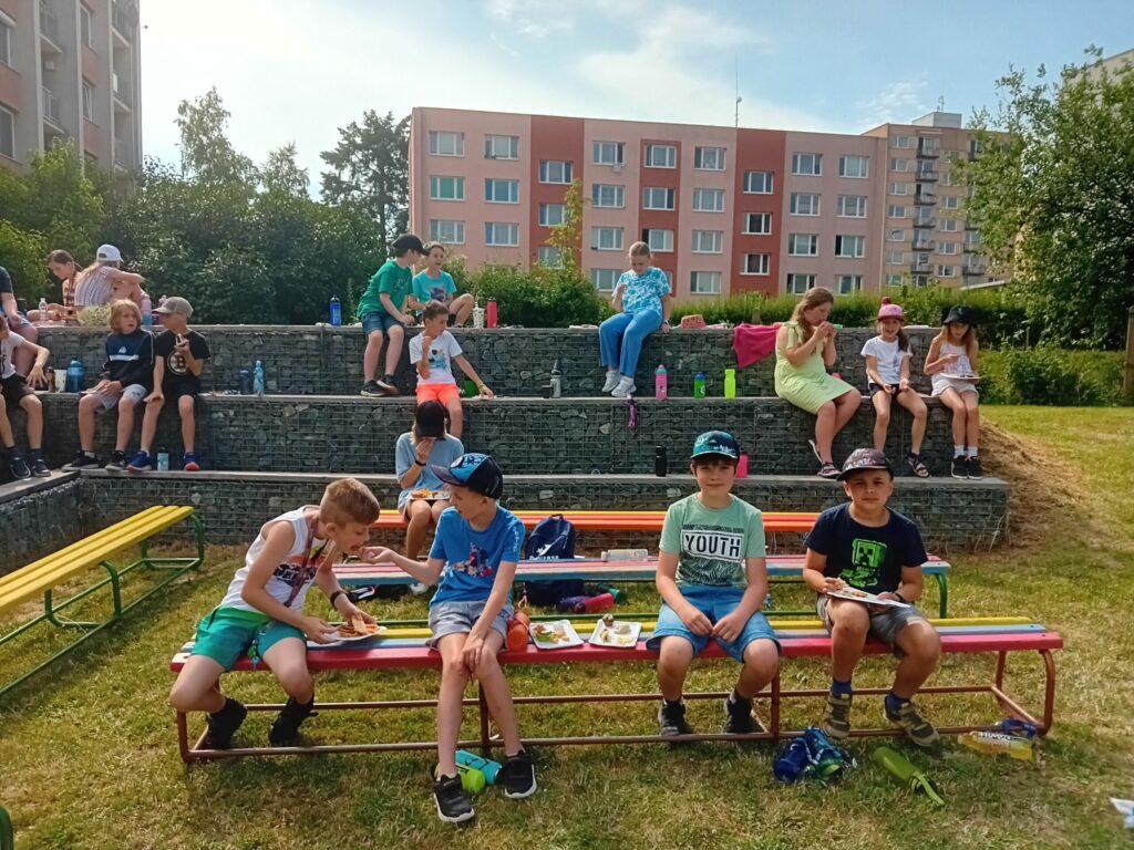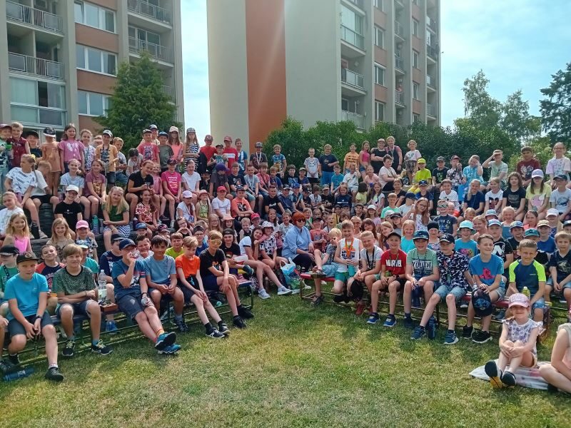 Dnes 20. 6. 2023 dopoledne jsme se na zahradě školy pomyslně rozloučili se školním rokem a přivítali léto!