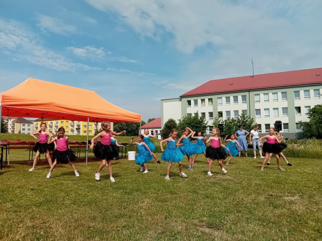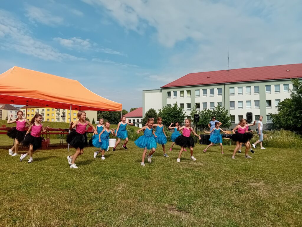 Letošní Zahradní slavnost zpestřila děvčata z Fit Dance, zájmového kroužku, který vede paní učitelka Pavla Vítková.  Zatančily nám Lama dance a zorganizovaly pro nás taneční mini kurz, který nás všechny moc bavil!
