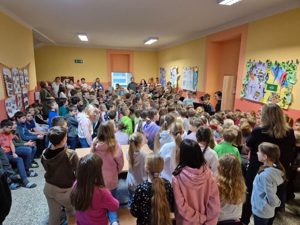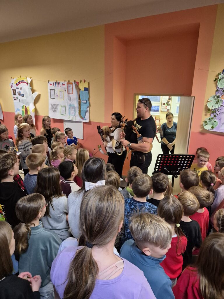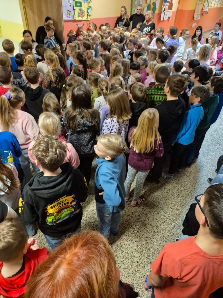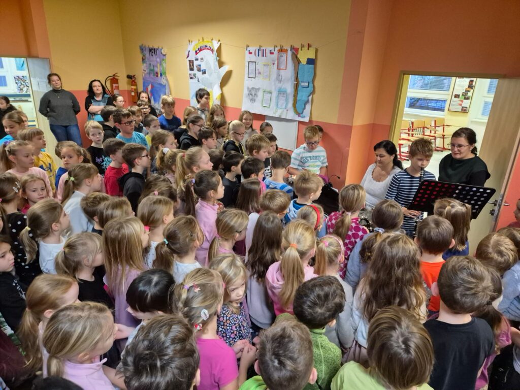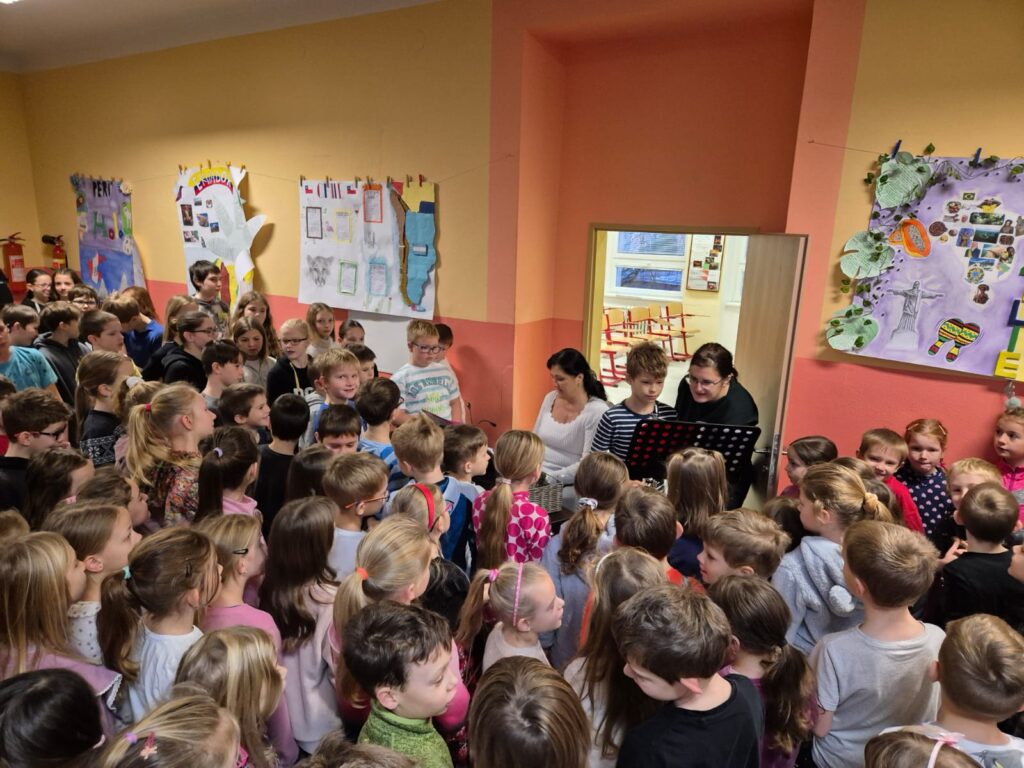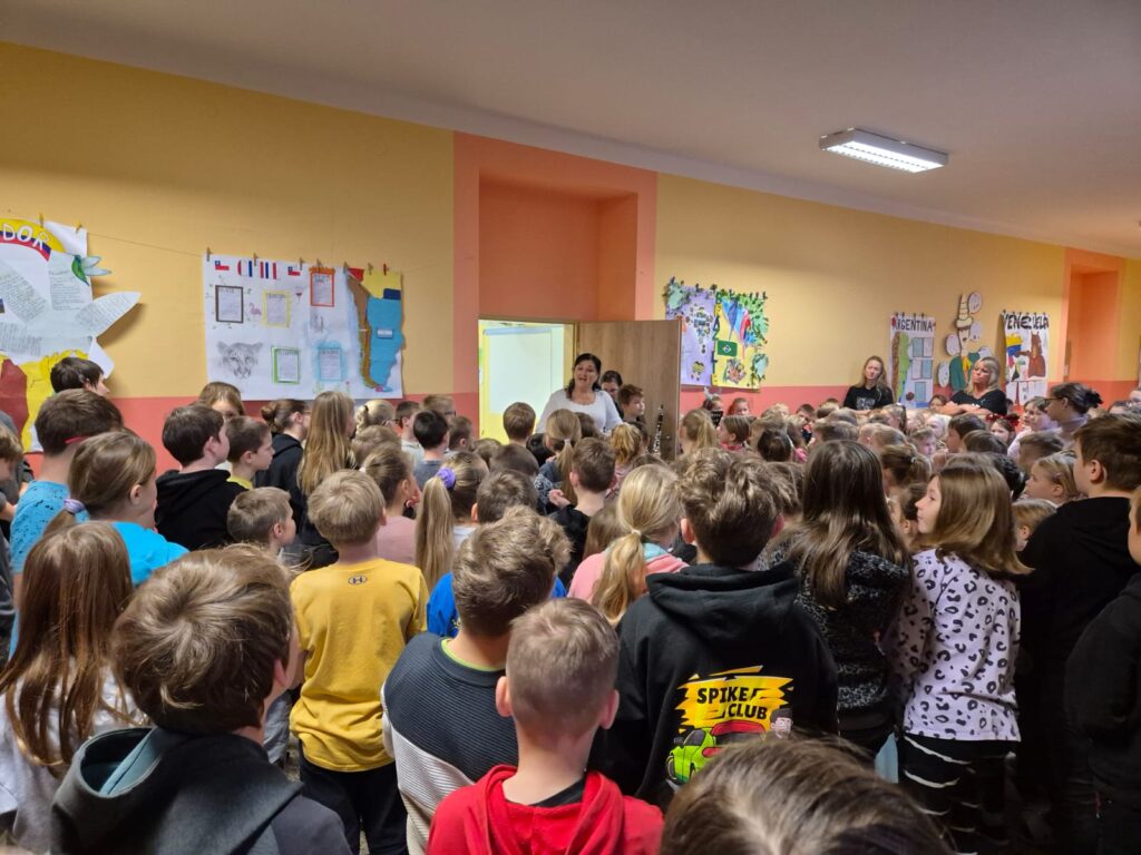 Poslední školní dny v tomto roce, než se všichni rozutekli k vánočním stromkům do svých domovů, jsme se sešli na chodbě školy a společně za doprovodu klavíru, klarinetu, flétny a dud jsme si zazpívali několik krásných českých koled. Na pomoc jsme si přizvali úžasného dudáka Mílu Vaváčka, který nám zahrál i historické melodie. Atmosféra to byla úžasná, děti zpívaly krásně a všichni jsme se naladili na očekávaný Štědrý den.